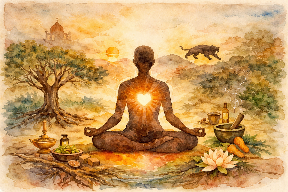 Ayurveda teaches that each person arrives with a unique constitution, a specific arrangement of energies, tendencies, and rhythms. Health is not conformity. It is coherence. Learning how to live in relationship with your own nature.
